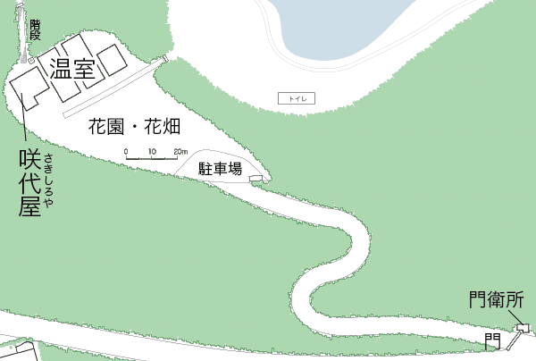 社務道森林園芸課の別称。別棟で建家をもつのは、この課だけである。神事や祭に使用する花々を育てるため、温室・花園・花畑を管理する。また、木々などを搬入するための専用駐車場がある。こちらの門衛所は、通常は無人。